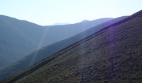 From the wee cairn the views to Arrocher and its hills were spectacular with the sun beginning to set behind them. I walked around the plateau and followed the fence line for a bit before deciding to head back. I ran the desent in order to catch Jim which I did about halfway down.
